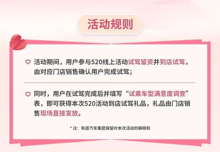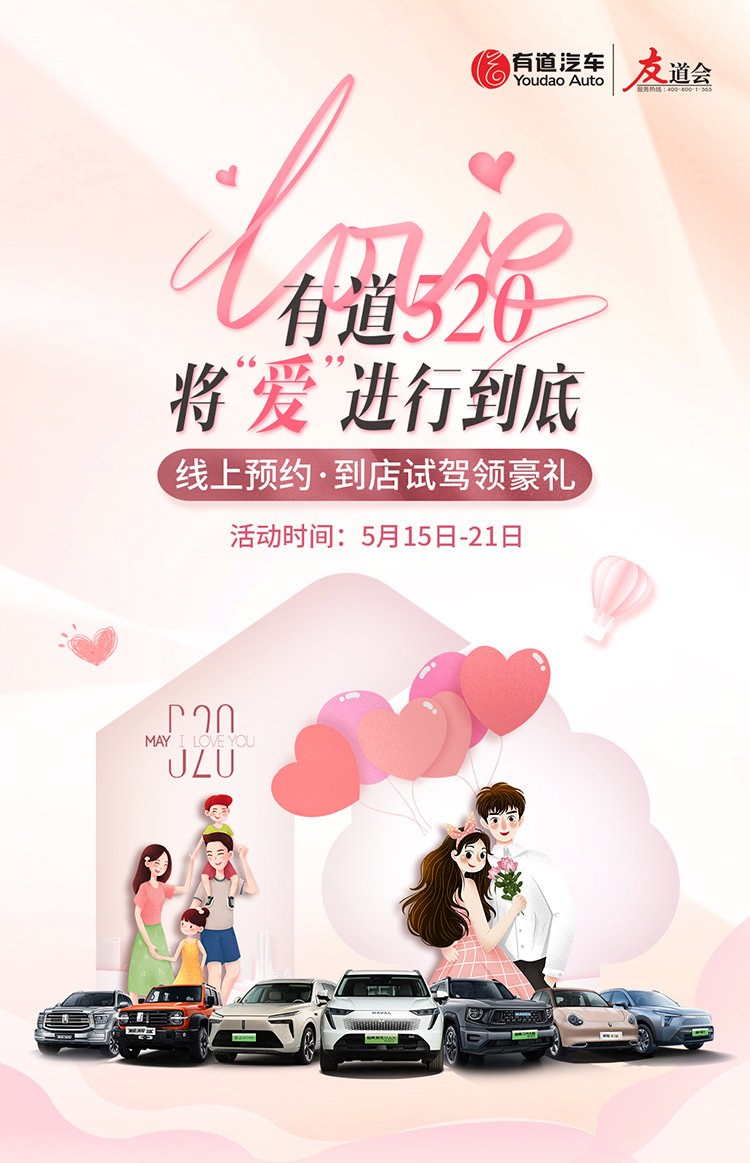 即可獲得有道品牌店精心準(zhǔn)備的520活動到店試駕禮品。