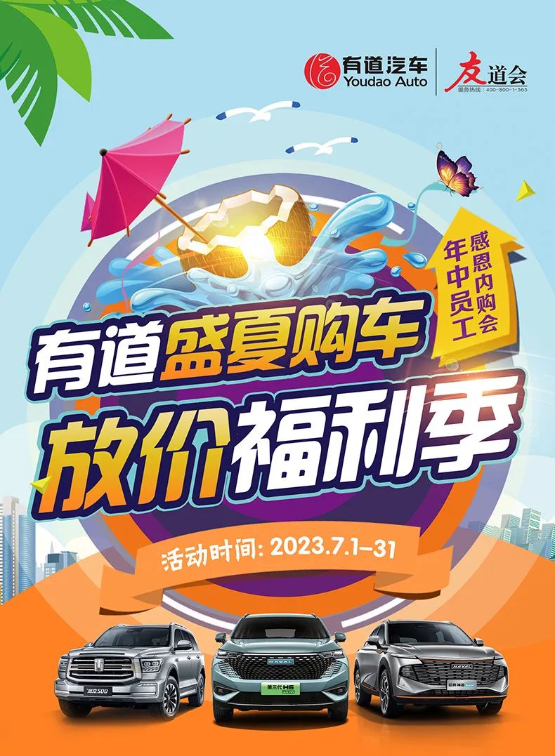 7月1日起,有道全面啟動盛夏購車“放價”福利季-年中員工感恩內購會活動,這個夏天,就要來體驗清涼鉅惠,活動期間嗨購愛車,搶員工親友內購價名額,享員工親友購車福利,至高尊享30000元購車基金。